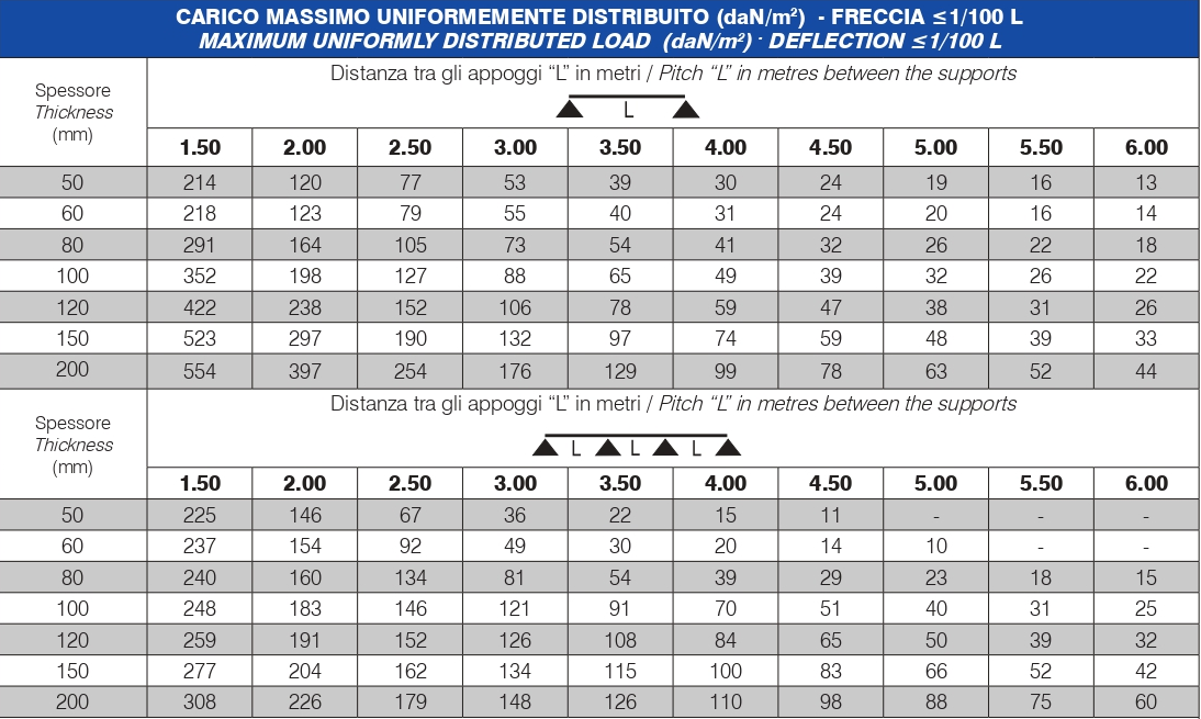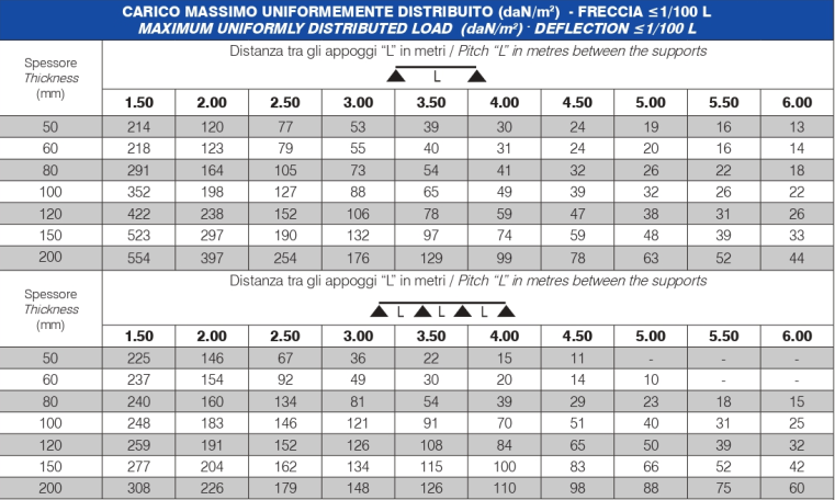 Épaisseur standard de polyuréthane (S) : 50, 60, 80, 100, 120, 150 et 200 mm.